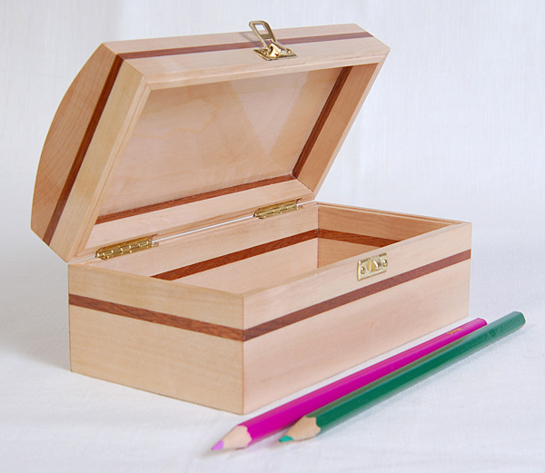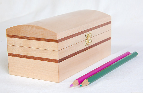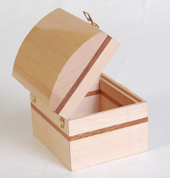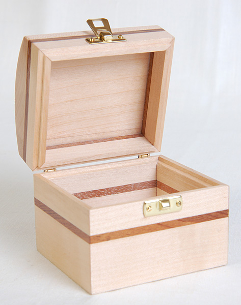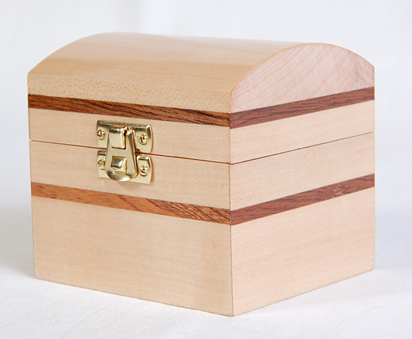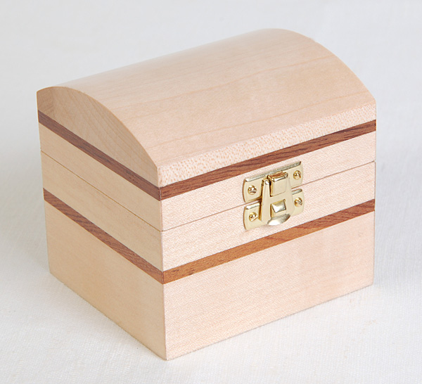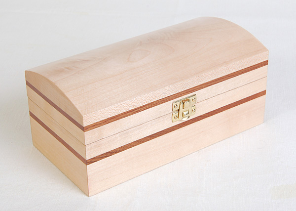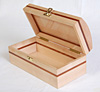 Описание: Шкатулка в форме сундучка выполнена из клёна со вставками красного дерева. Прекравно подойдёт для хранения драгоценностей либо для упаковки небольших сувениров.