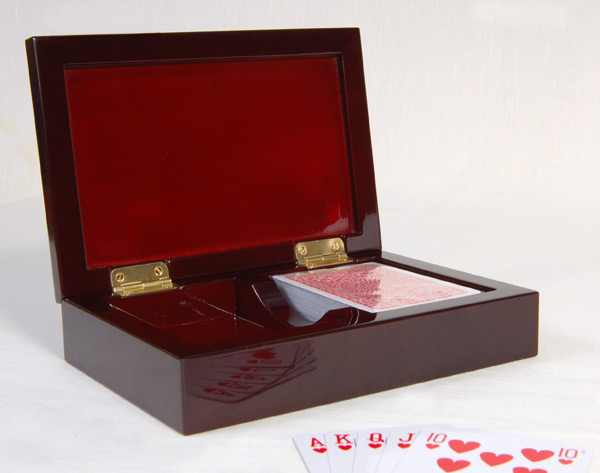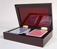 Описание: Футляр для хранения 2-х колод карт покерного размера. Идеальный подарок любителям игры в карты. Глубокое лаковое покрытие (8-мь слоёв глянцевого лака с ручной шлифовкой) делает внешний вид коробочки просто изумительным.
